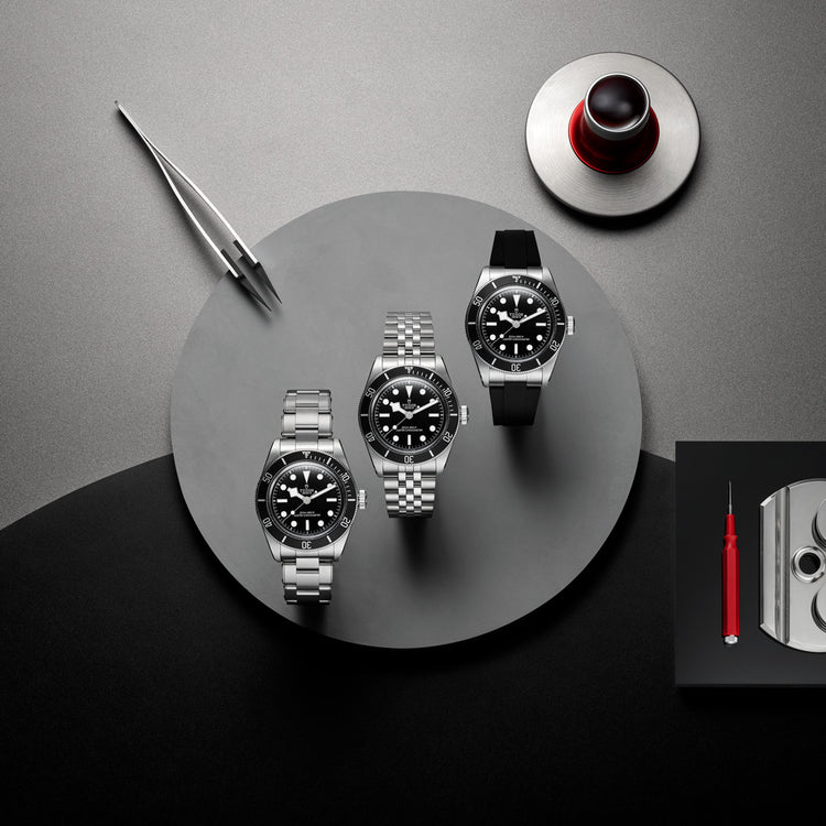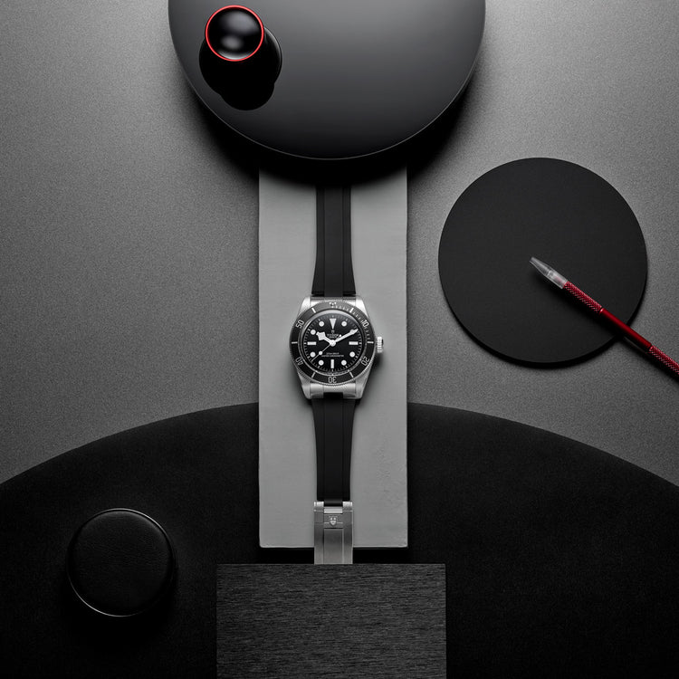 そのほか、適したサイズにカットできる”T-fit”クラスプ付きブラックラバーストラップの選択肢も用意されているなど、着用シーンによってストラップの付け替えを行うことが可能なので、気軽にお客様のその日の気分や用途、服装などに合わせてブレスレットの交換をしていただけるところも、チューダーウォッチならではの魅力です。