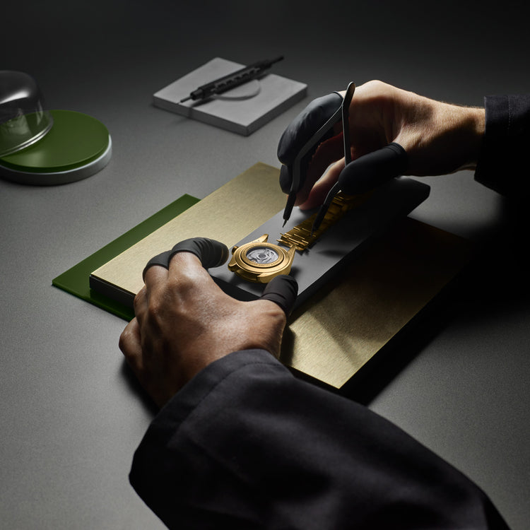 また、ダイアルにはマットゴールドのディテールが散りばめられた豊かな「ゴールデングリーン」カラーが採用され、マットな18Kイエローゴールド素材にダイアルとベゼルの組み合わせが、派手さではなく温かみと少しのビンテージ感を与えてくれ、普段のコーディネートへの絶妙なアクセントを叶えてくれることと思います。
