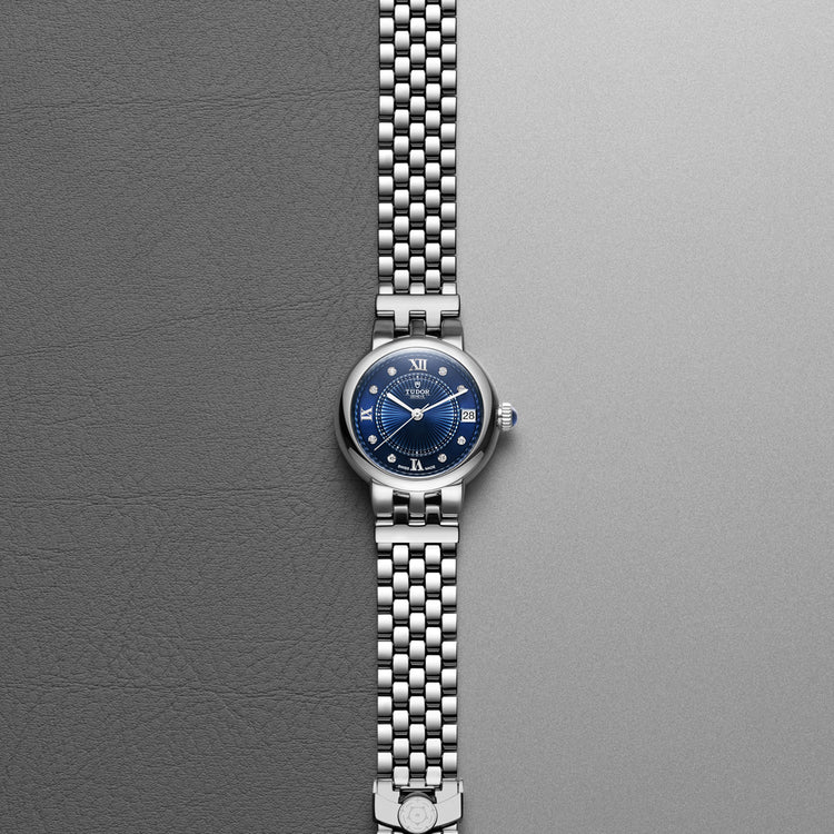 また、今回「CLAIR DE ROSE」の新作に採用されたのは、美しい「チューダーブルー」のダイアルです。