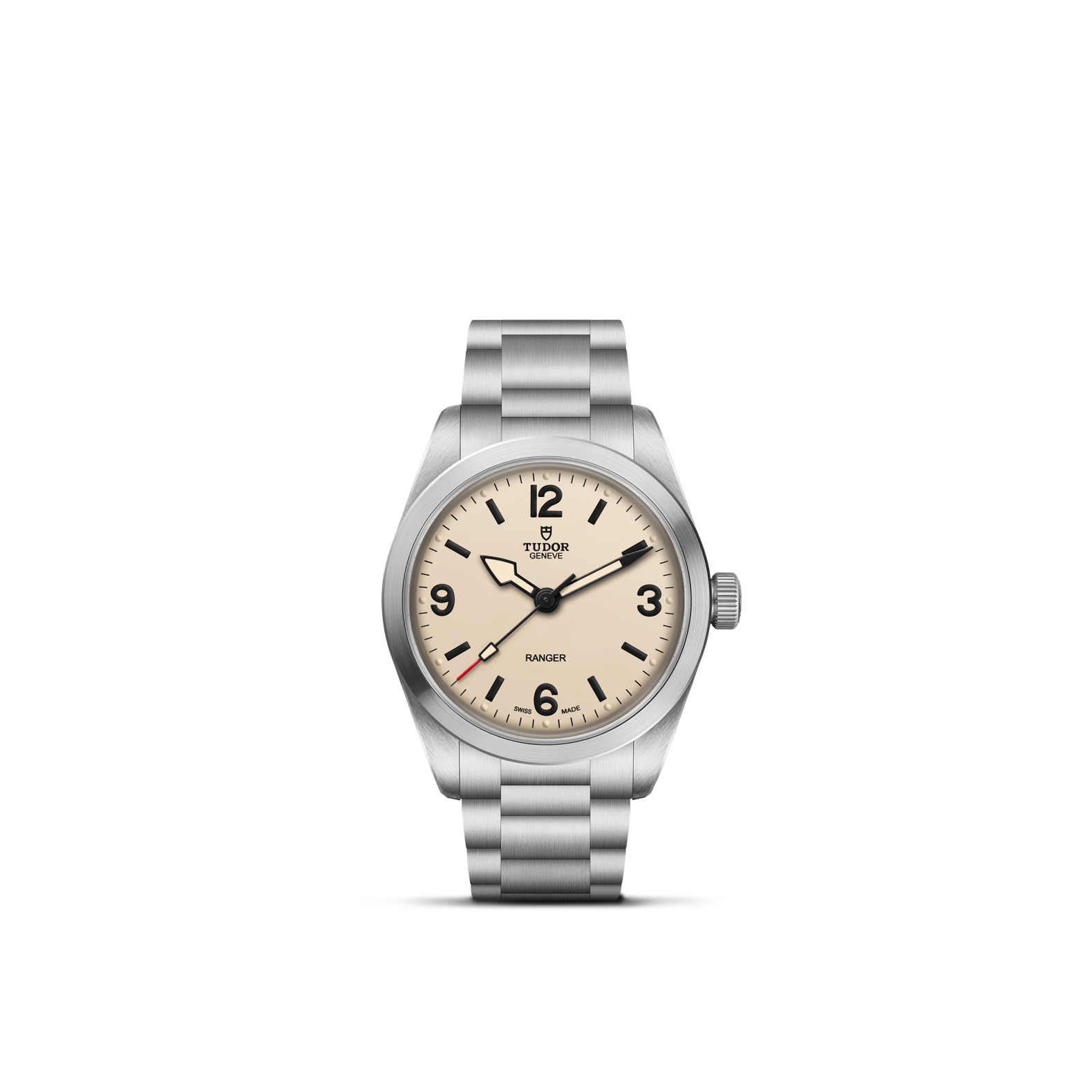 レンジャーモデルは、果敢な冒険の精神を称えるチューダーの現代的な探検時計だ。マニュファクチュール キャリバー MT5400またはMT5402を搭載し、36 mmまたは39 mmケース、“T-fit”クラスプ付きブレスレットまたはファブリックストラップを備える頑丈なツールウォッチ。そのデザインは、ブラックまたは「デューンホワイト」のダイアルに3、6、9、12のアラビア数字インデックスを配するなど、歴史の中で築かれたデザインコードを重んじながら、最先端技術を採用している。